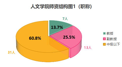 学院现设汉语言文学、文物与博物馆学、历史学、数字人文四个本科专业,在校生规模达1100余人。现有专任教师51人,其中教授7人、副教授13人,硕士及以上学历教师占比67%(博士15人)。师资队伍兼具学术深度与实践能力,拥有“双师双能型”教师7人,国家级、省市级高层次人才多人,其中“国家百千万人才”1人、享受国务院政府特殊津贴专家1人,并涌现出“江西省新时代学生心中的好老师”等育人典范。