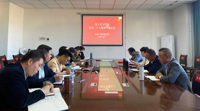 练缤艳对今后如何深入学习宣传贯彻党的二十大精神进行部署。她指出,学习好、宣传好、贯彻好党的二十大精神是学院当前和今后一个时期的首要政治任务,也是推动学院高质量发展的必然要求。全院教职工要围绕“学”“研”“讲”“干”,扎实做到全面学习、全面把握、全面落实,切实提高政治站位,把思想和行动统一到以习近平同志为核心的党中央决策部署和工作要求上来。
