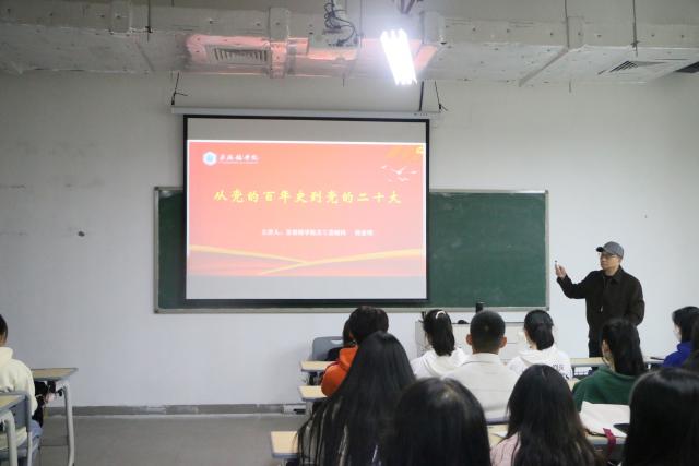 饶亚明以PPT授课的形式,通过以“不忘初心,牢记使命”为主题的中国共产党历史展览的图片,从“党的历史巡礼及其启示”“党的二十大精神要义”和“全面贯彻落实党的二十大精神”三个部分进行阐述,为大家带来一堂精彩生动、内容详实的宣讲报告会。