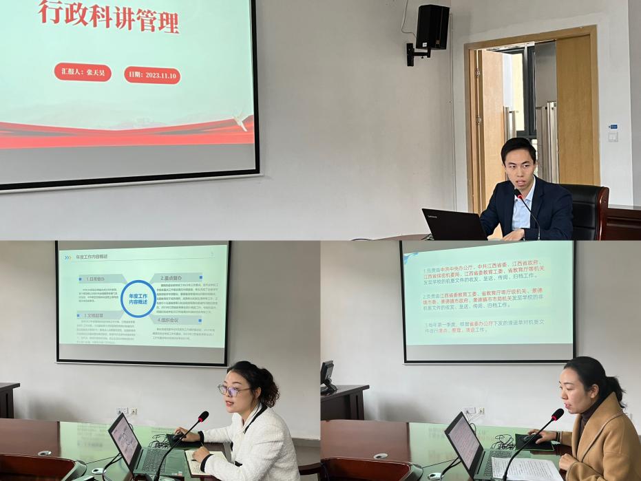 (本网讯:吕远茹)为学习贯彻习近平总书记考察江西重要讲话精神,达到学以致用的效果,11月10日下午,党政办公室在318召开“说管理”工作会议,党委委员、副校长方漫出席会议并讲话,党政办副主任程树武主持会议。