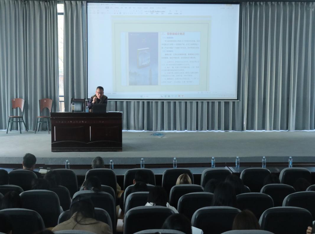 讲座由校关工委与人文学院主办。师生代表近200人聆听讲座。